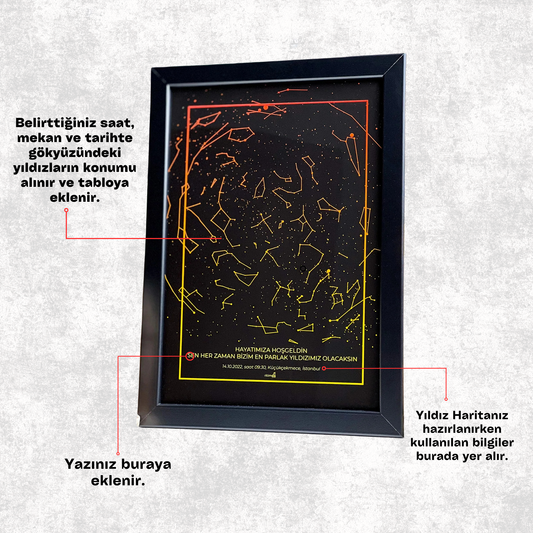 İndirimGökyüzü Haritası Black & Gold
