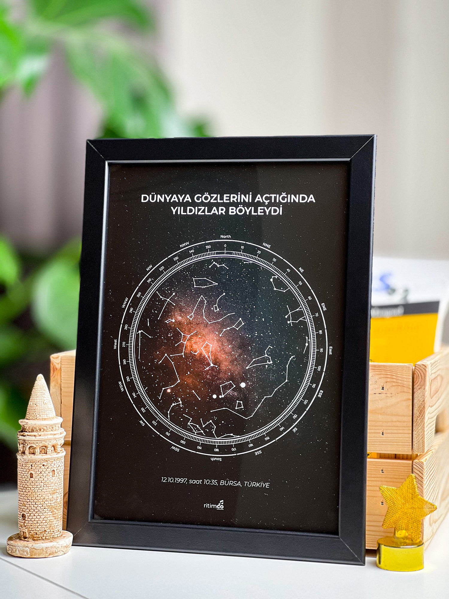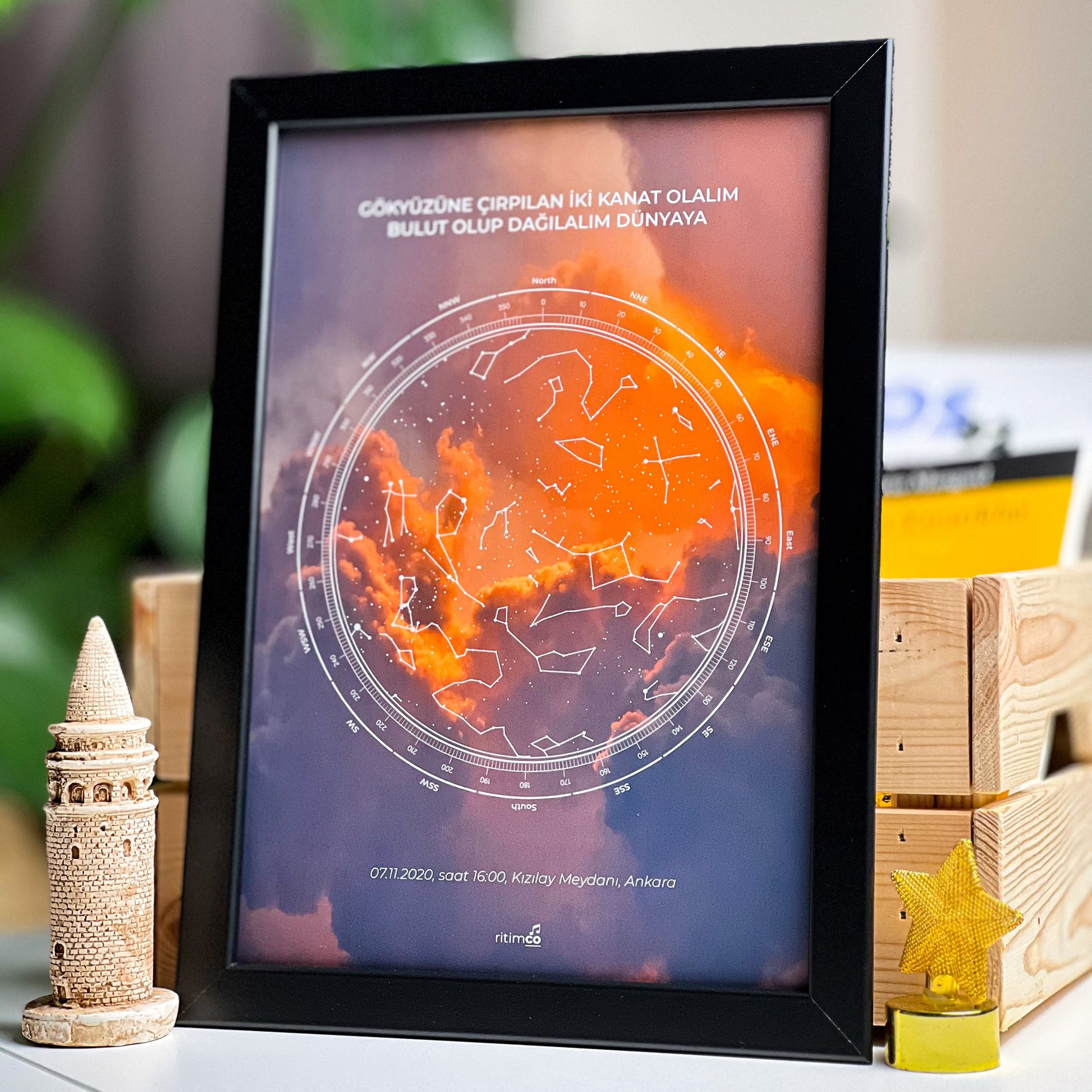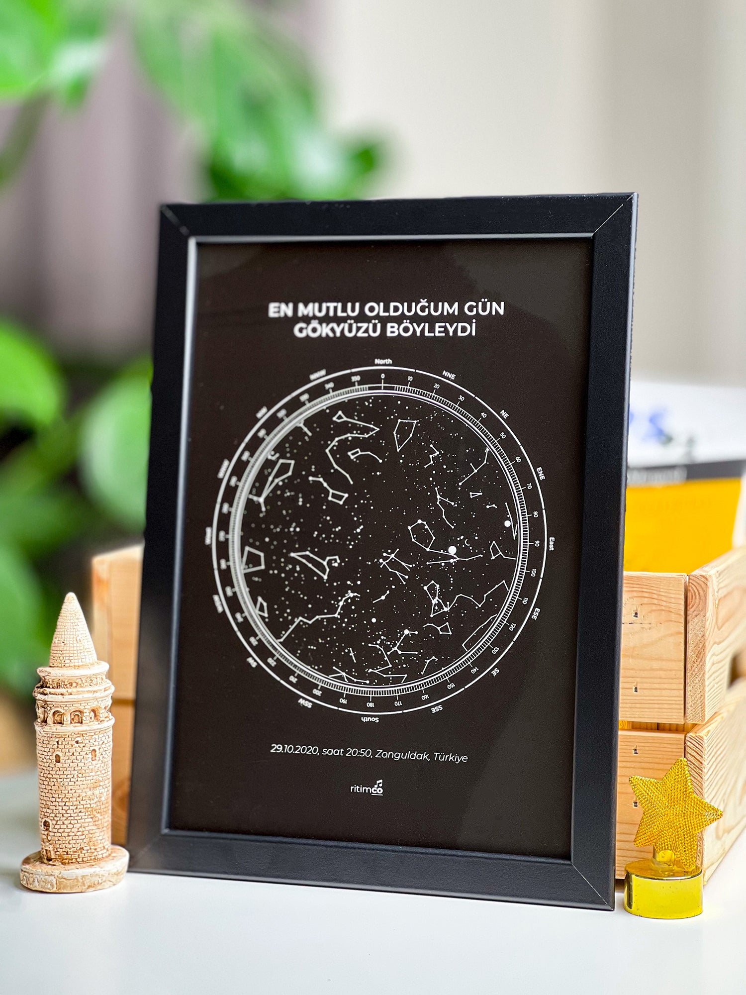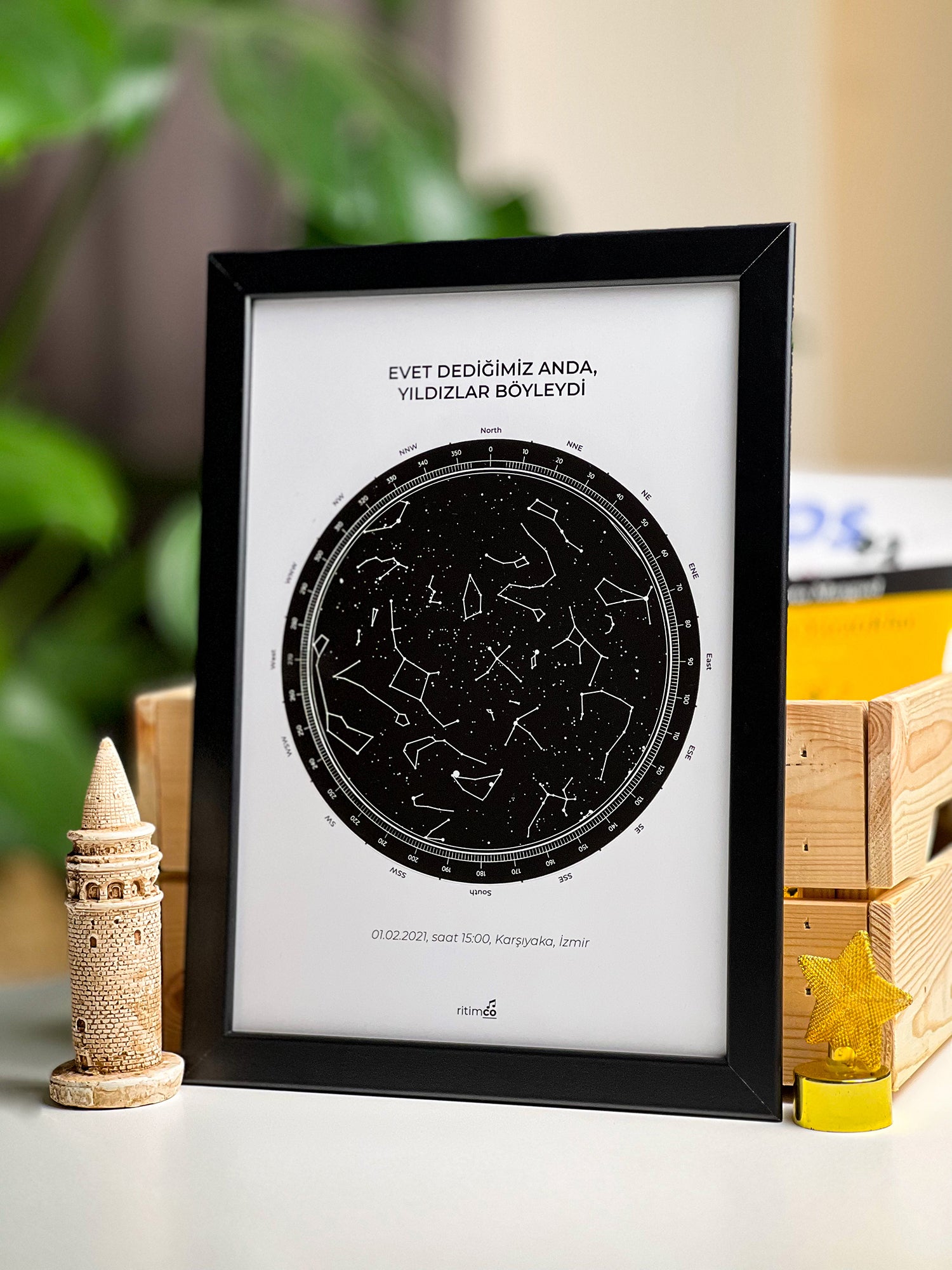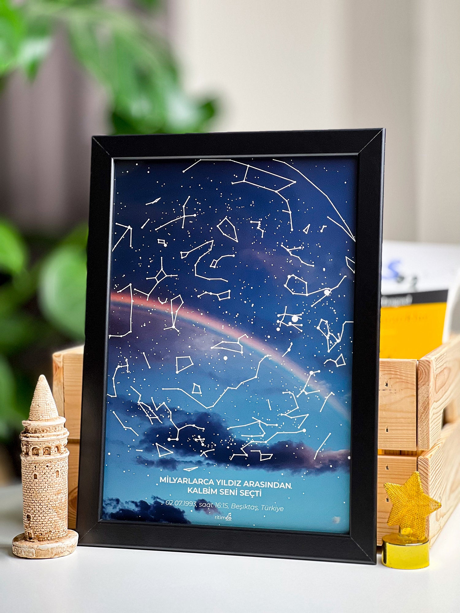 - 21x30cm Çerçeveli Gökyüzü Haritası (Tasarım tercihinize göre değişmektedir)