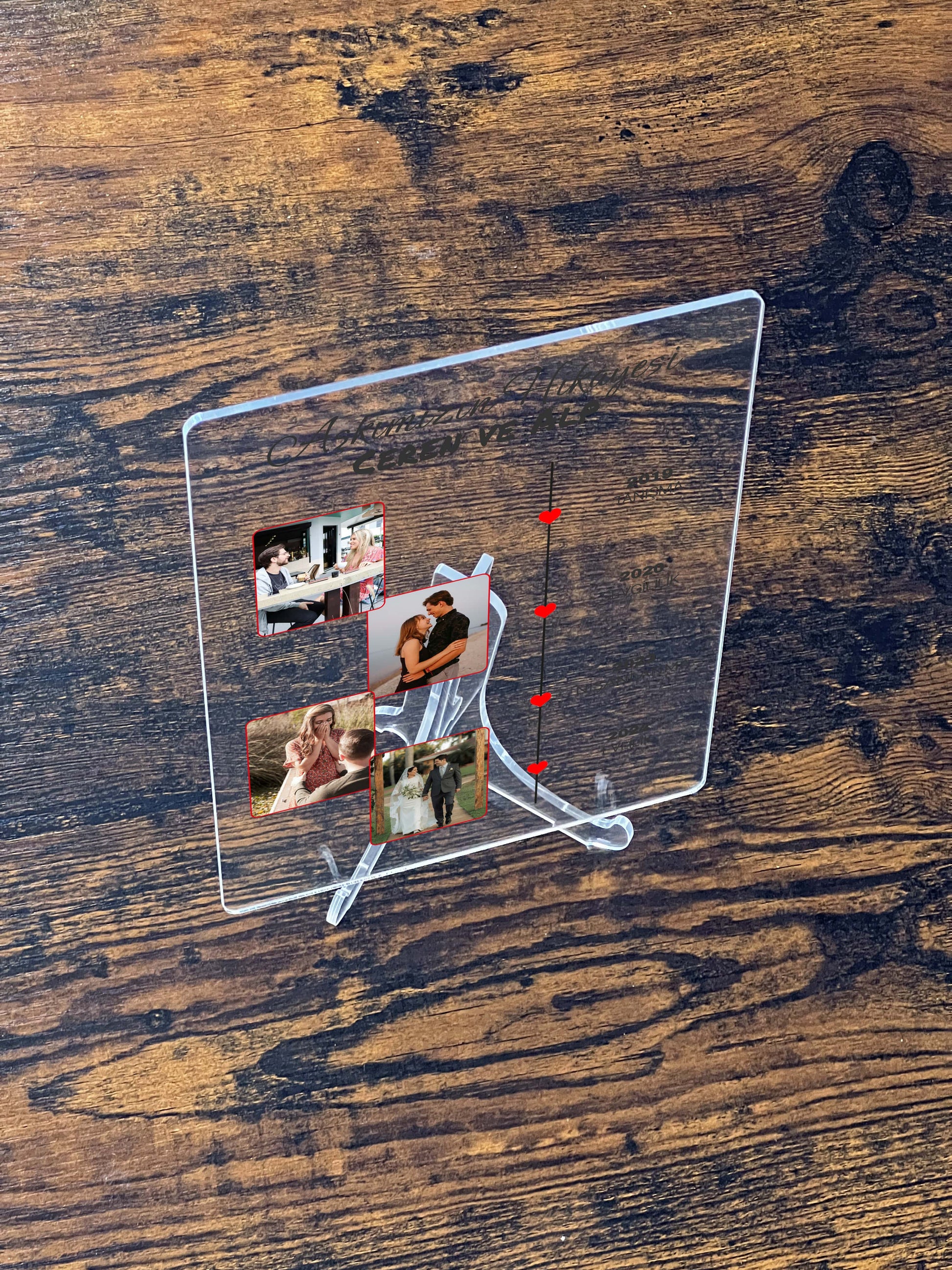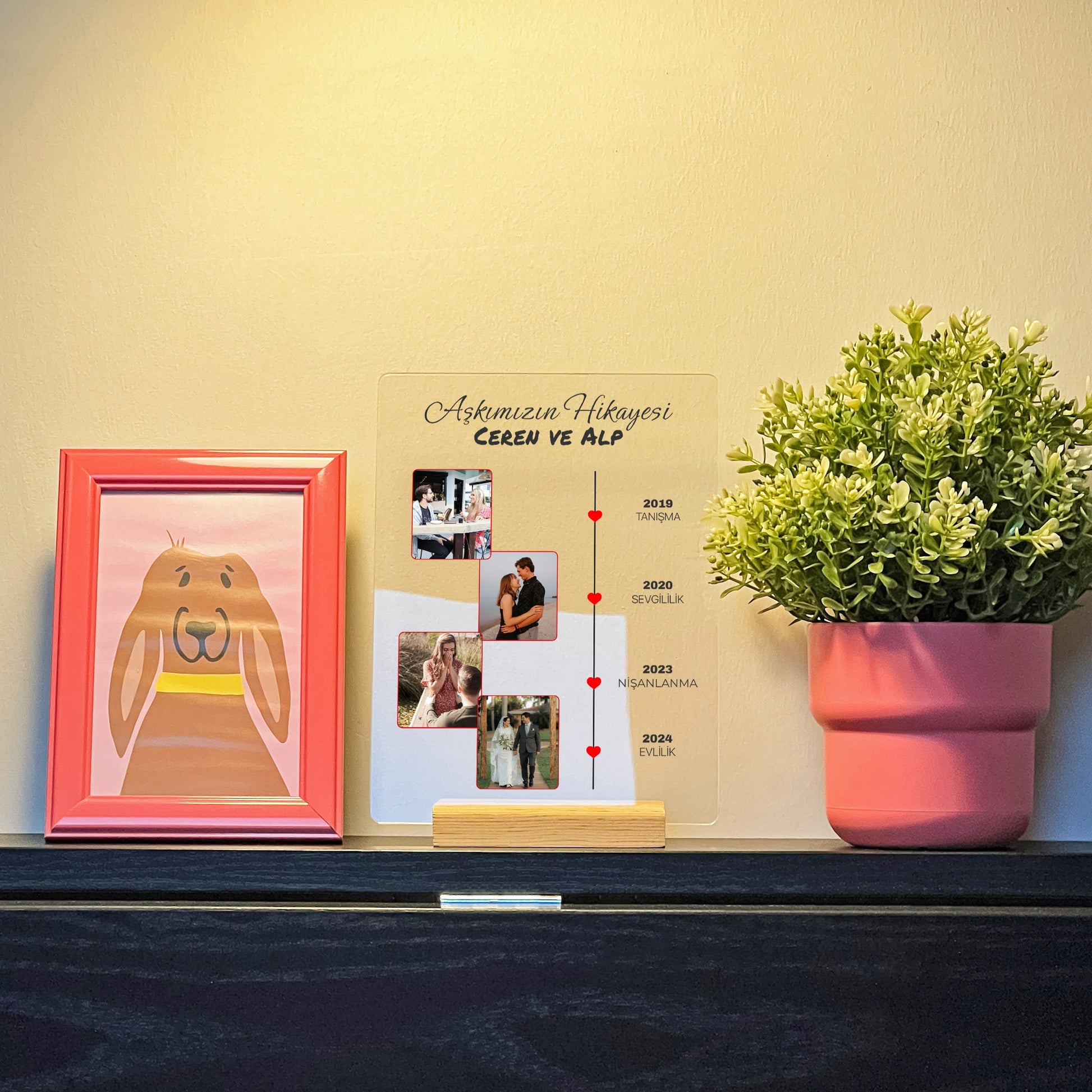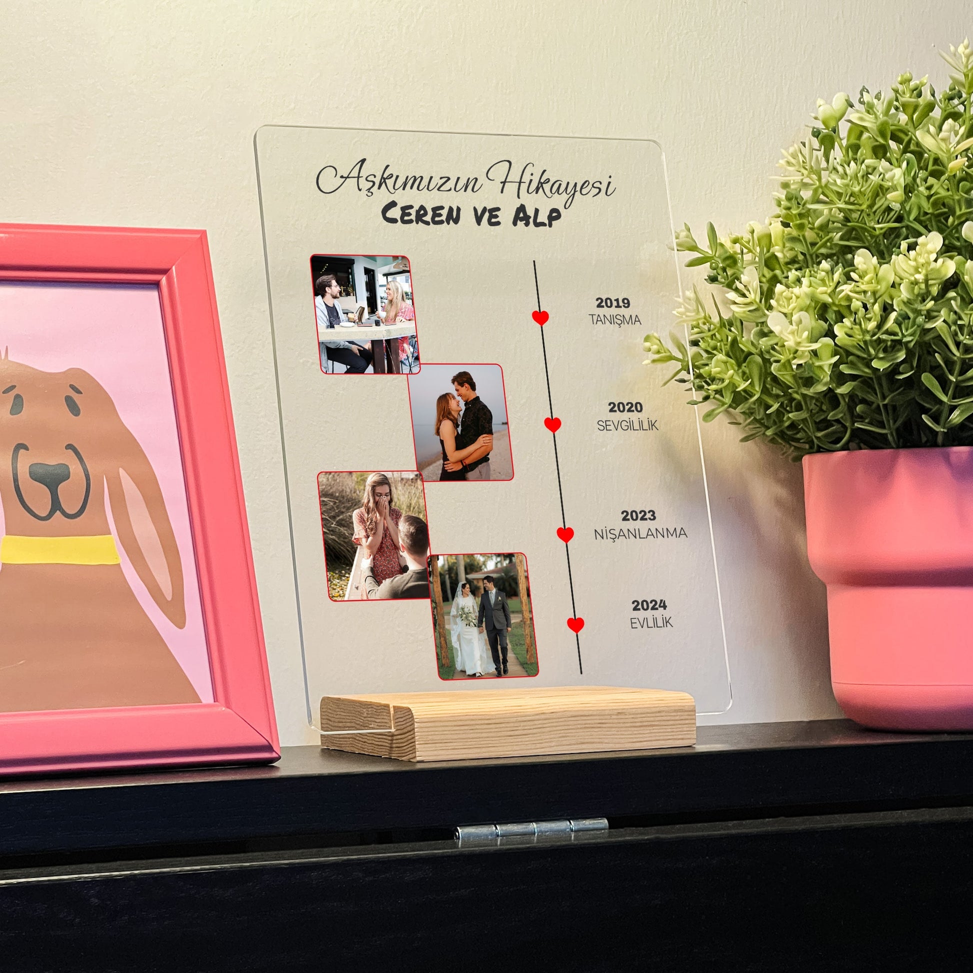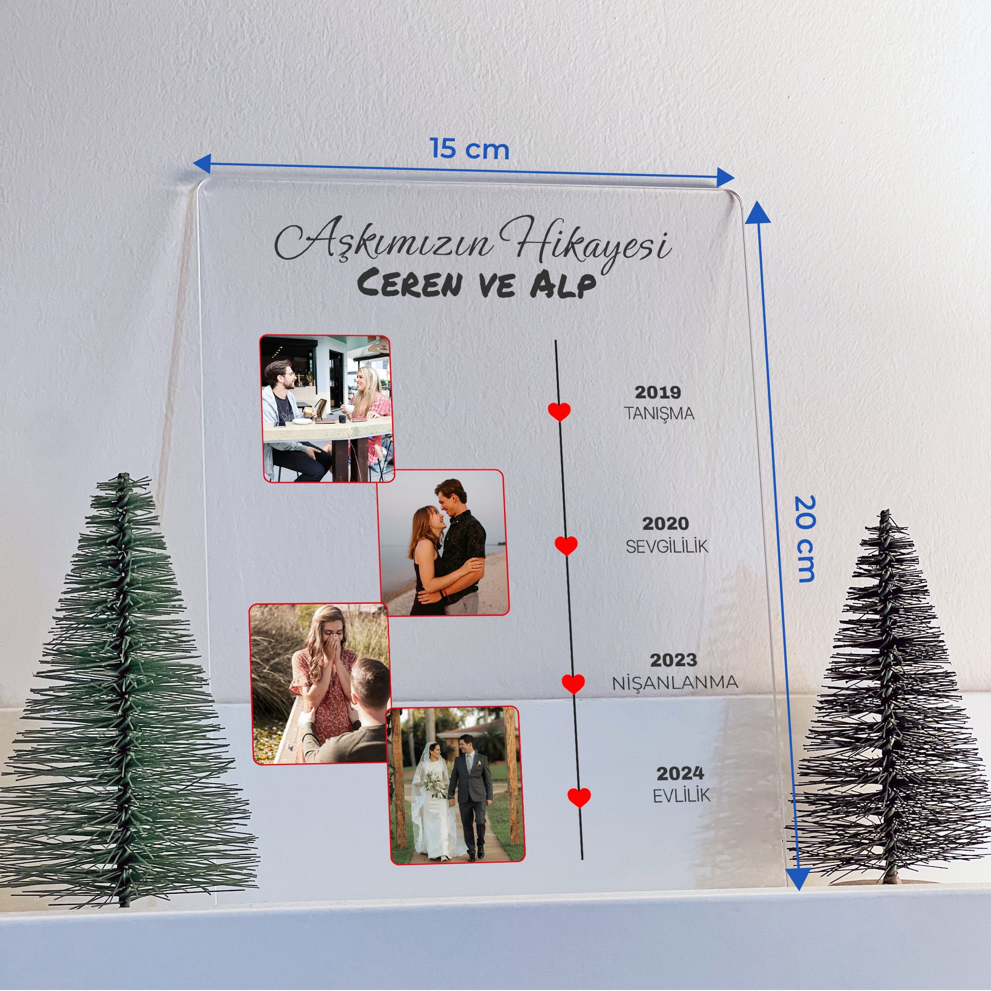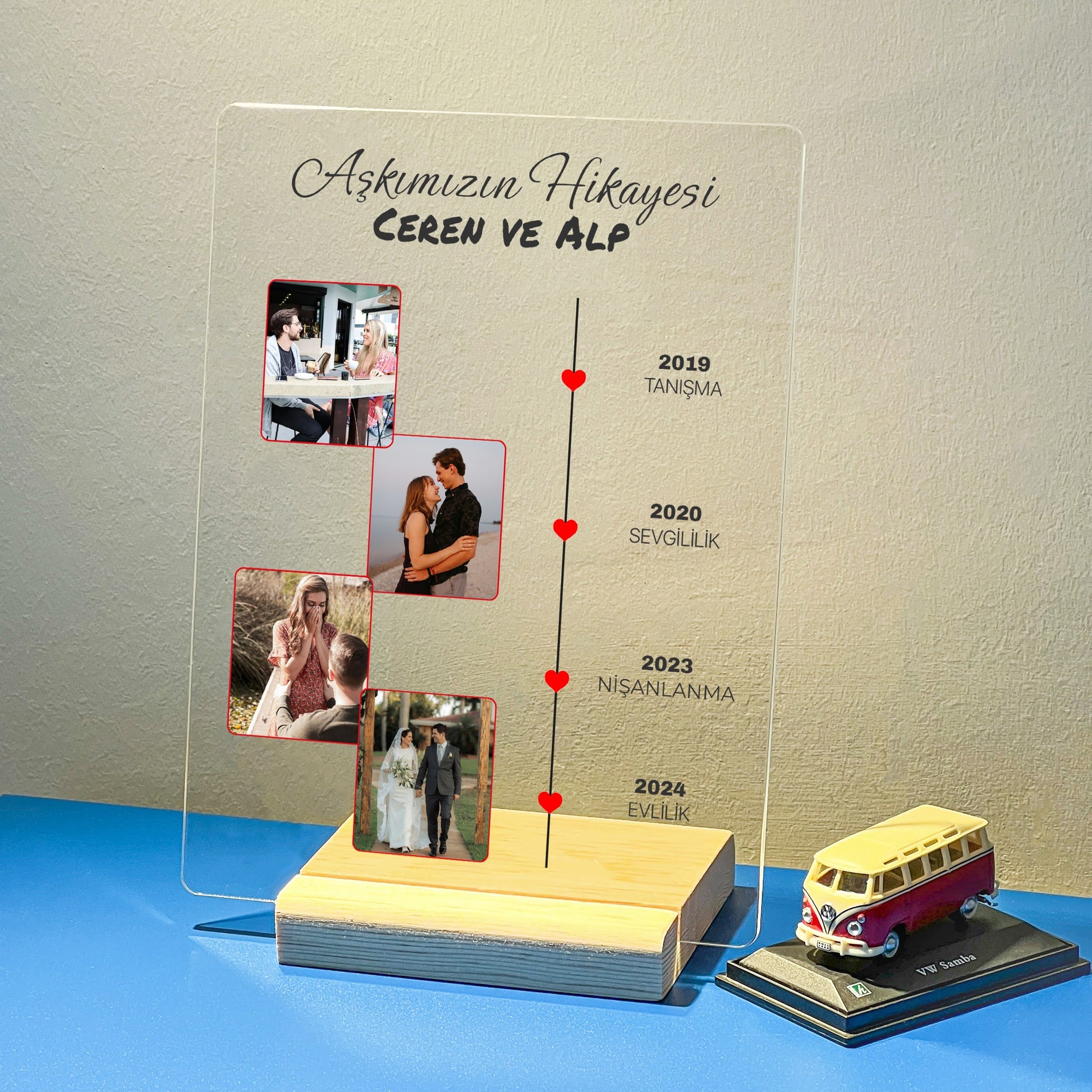 İlişkinizdeki en önemli tarihleri, en mutlu kareleri ve anılarınızı ölümsüzleştireceğiniz benzersiz bir tasarıma hazır mısınız? Kişiye Özel Aşk Yolculuğu Akrilik Tablo, her aşamada yaşadığınız duyguları ve özel anları zarif bir zaman çizelgesinde bir araya getirir.
