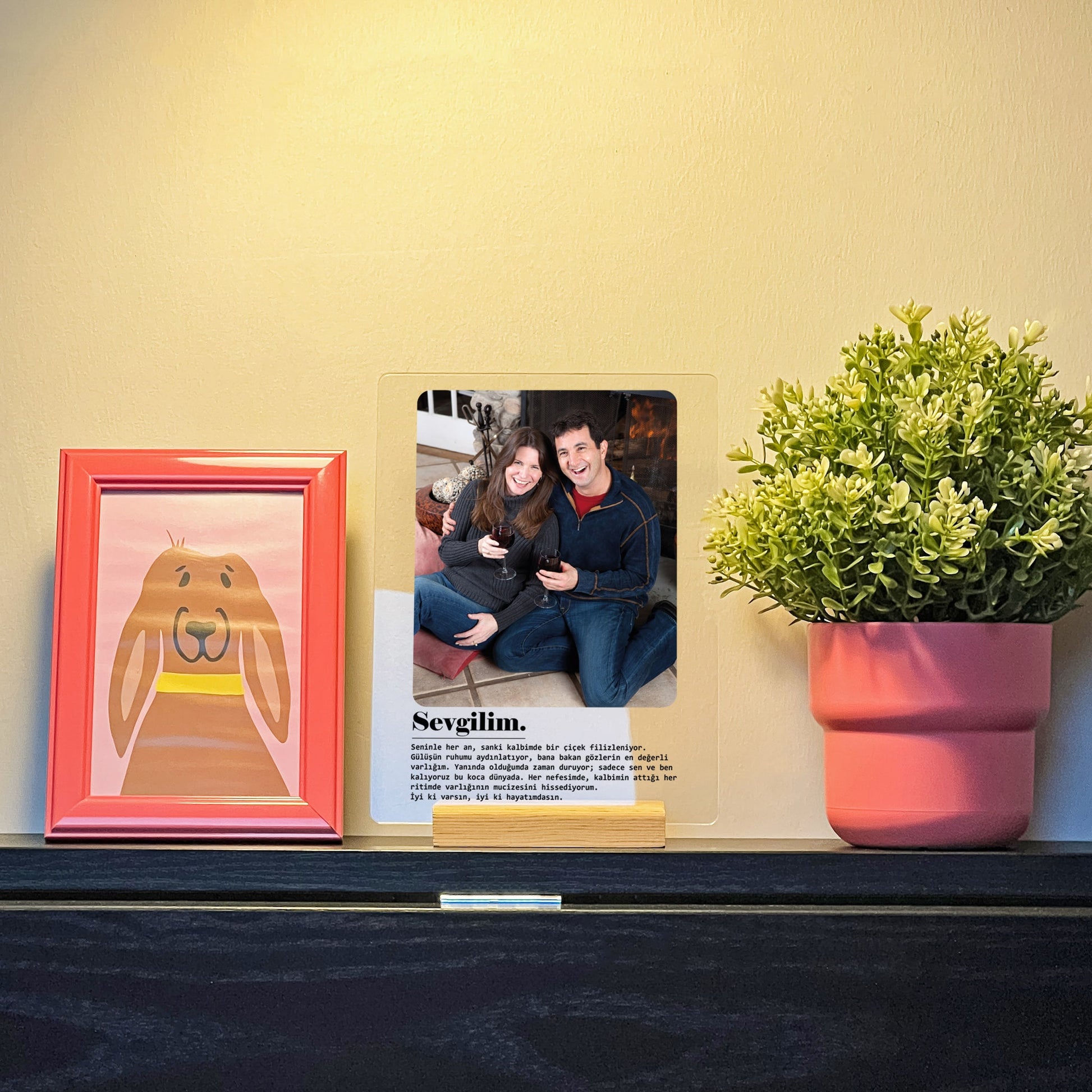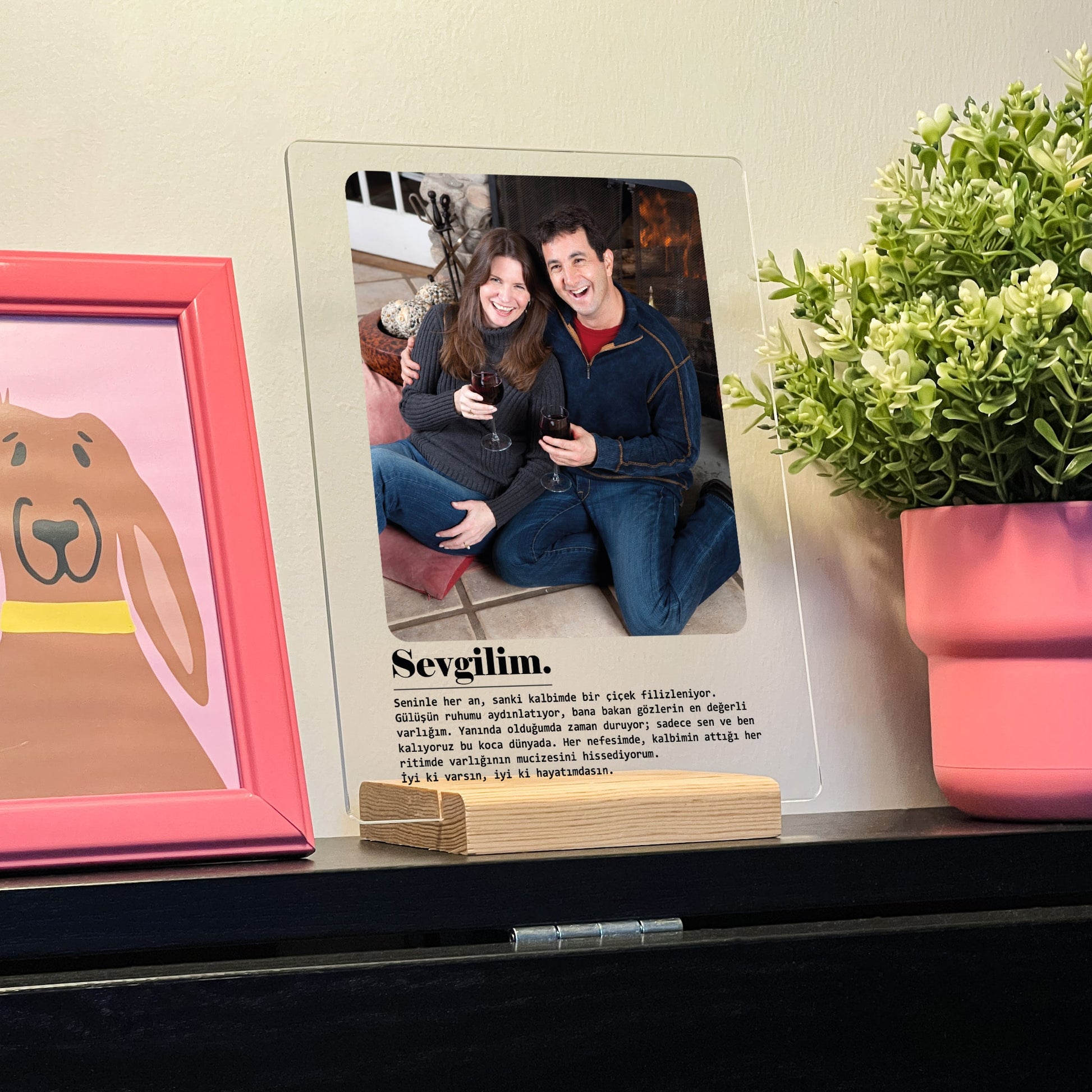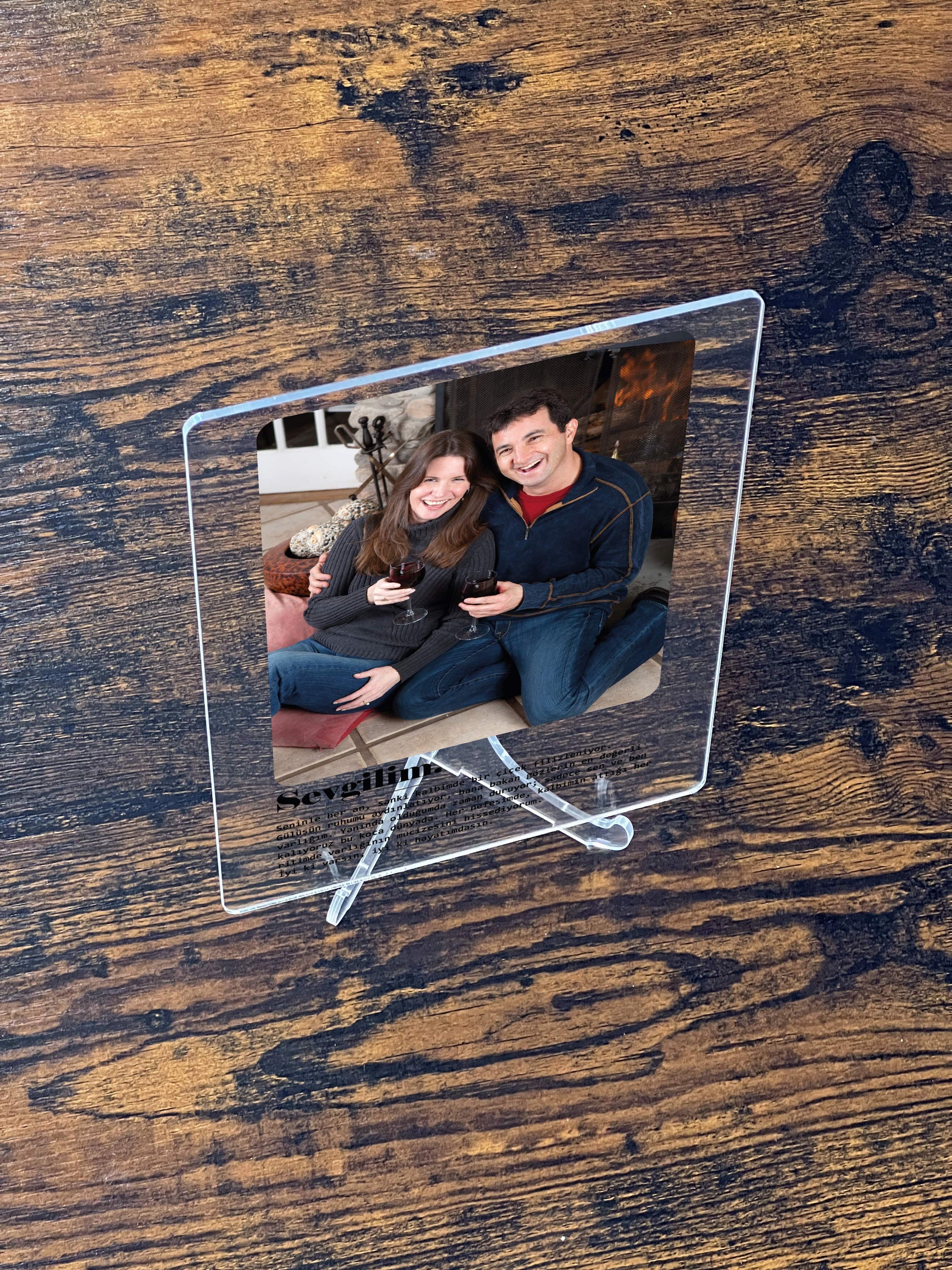 Aşkınızı en içten duygularla ifade etmek için ideal bir tasarım: “Sevgilim” metinli akrilik tablo. Bu özel tasarım, sizin ve sevgilinizin fotoğrafını canlı ve dayanıklı baskı teknolojisiyle akrilik üzerine taşıyarak, romantik bir hatıraya dönüştürüyor.