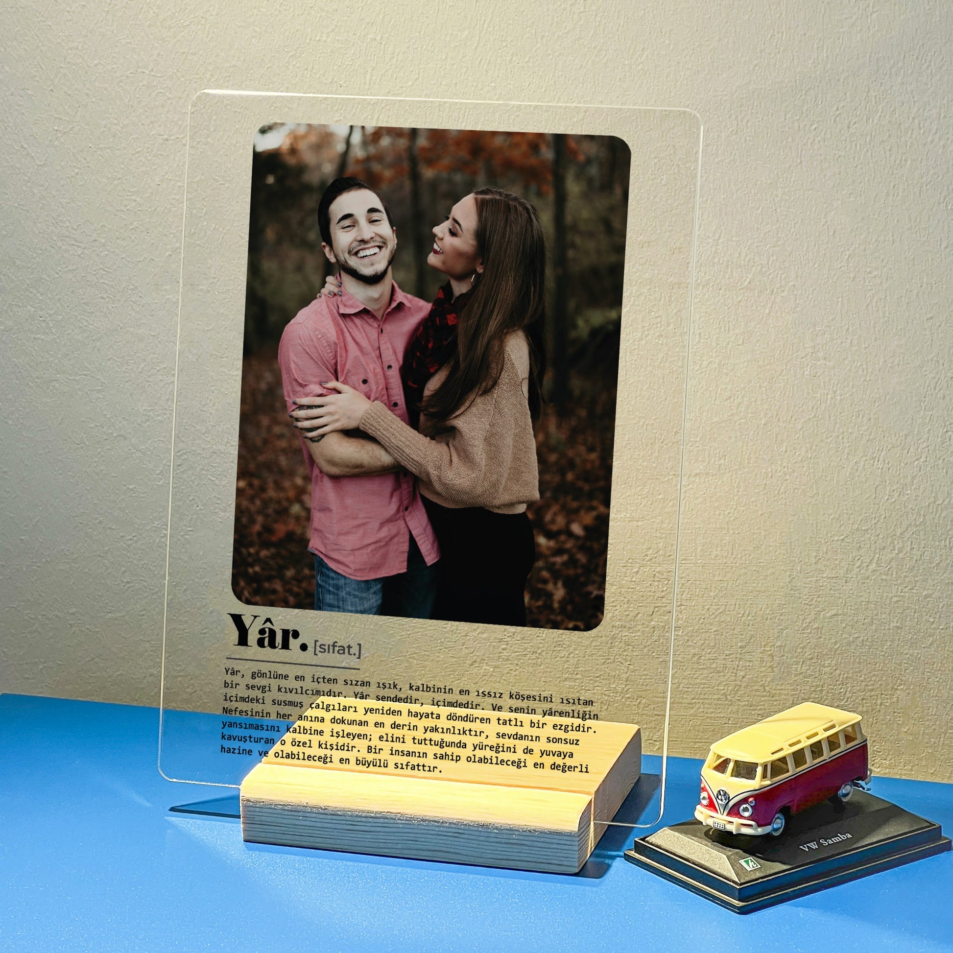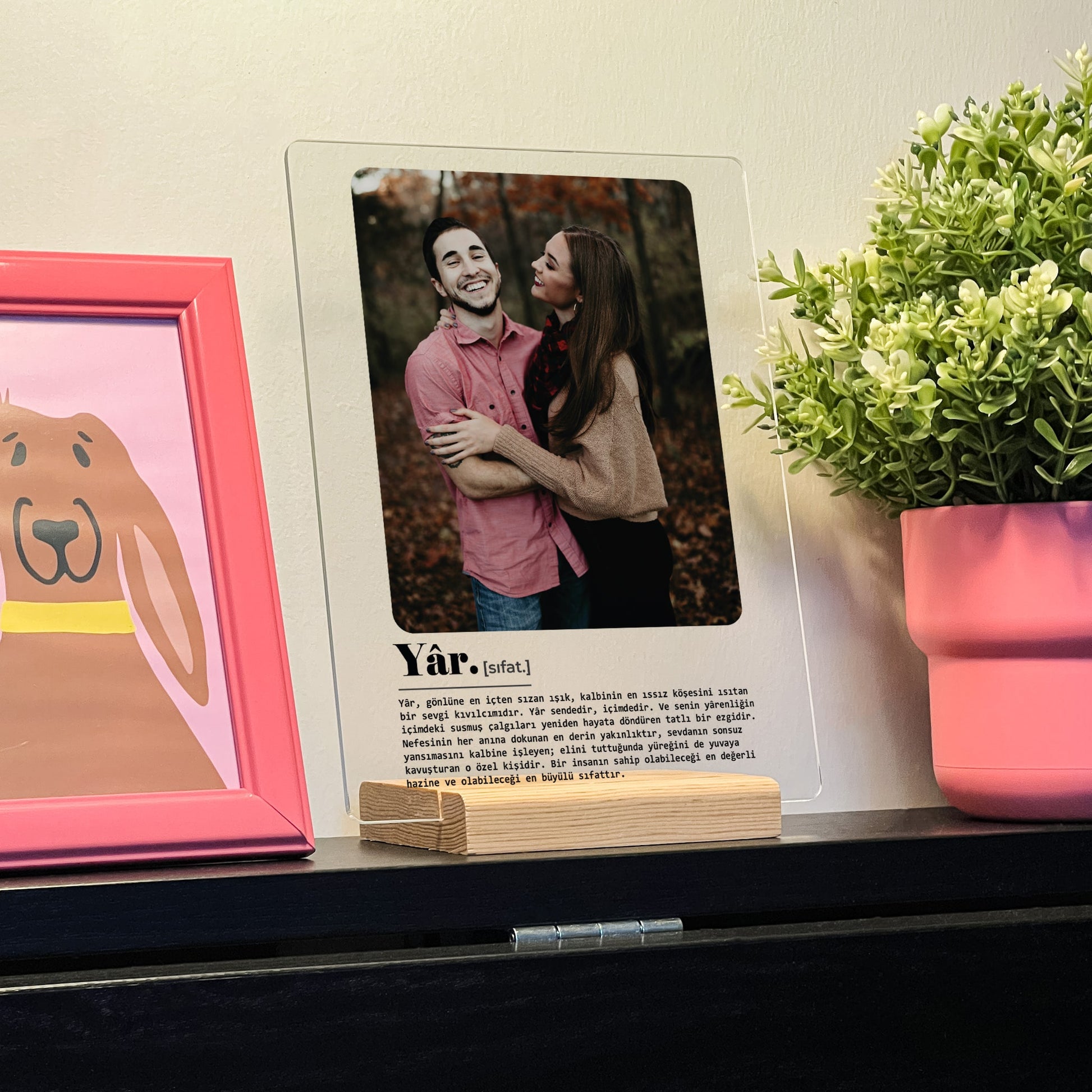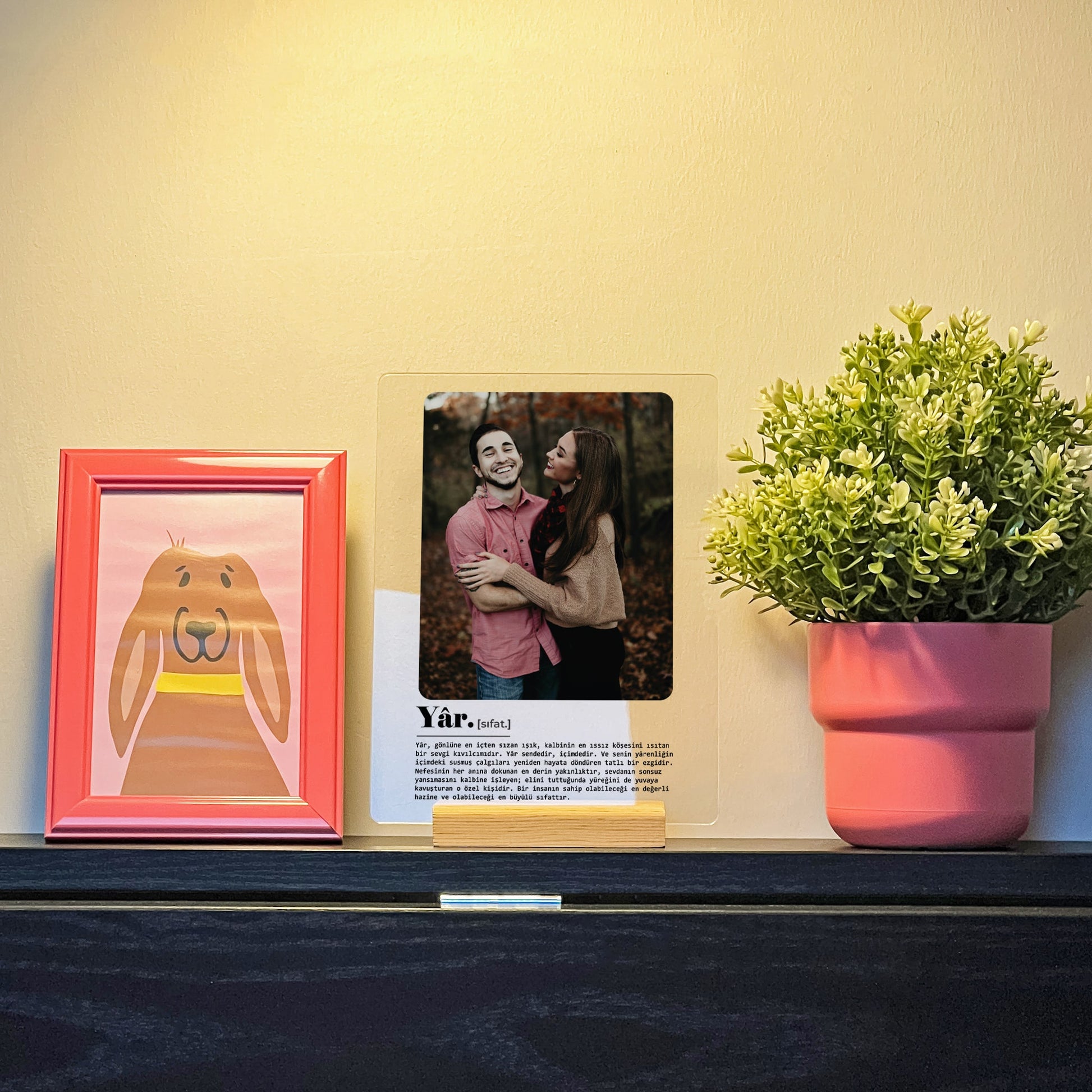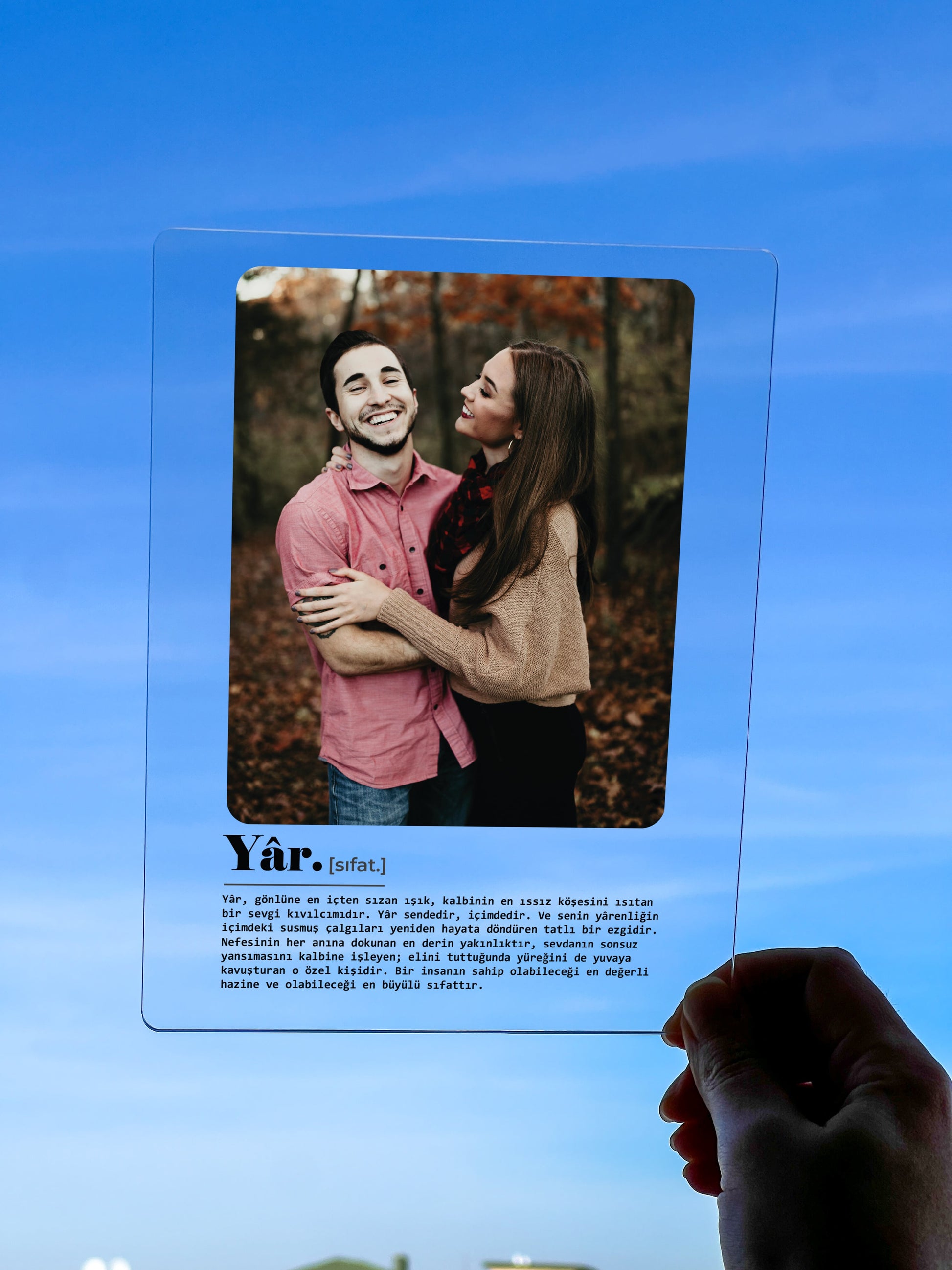 En derin hislerinizi ve en güzel fotoğrafınızı zarif bir tasarımda buluşturmak ister misiniz? “Yâr” temalı akrilik tablo, kalbinizde sakladığınız özel duyguları kelimelere dökerek, sevginin en içten yansımasını gözler önüne seriyor.